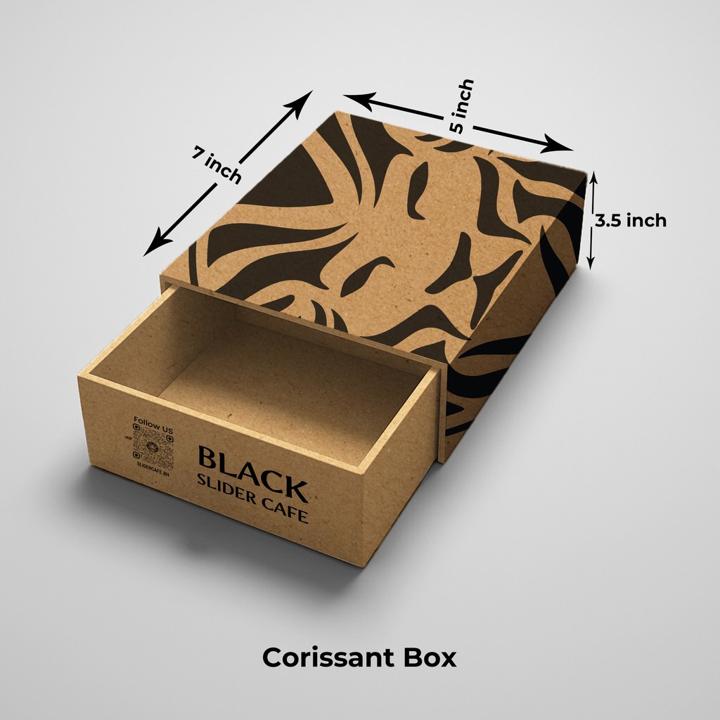 Custom kraft packaging for takeaway croissants, featuring the café’s lion emblem. Designed to ensure practicality, durability, and consistency across Slider Café’s packaging line.