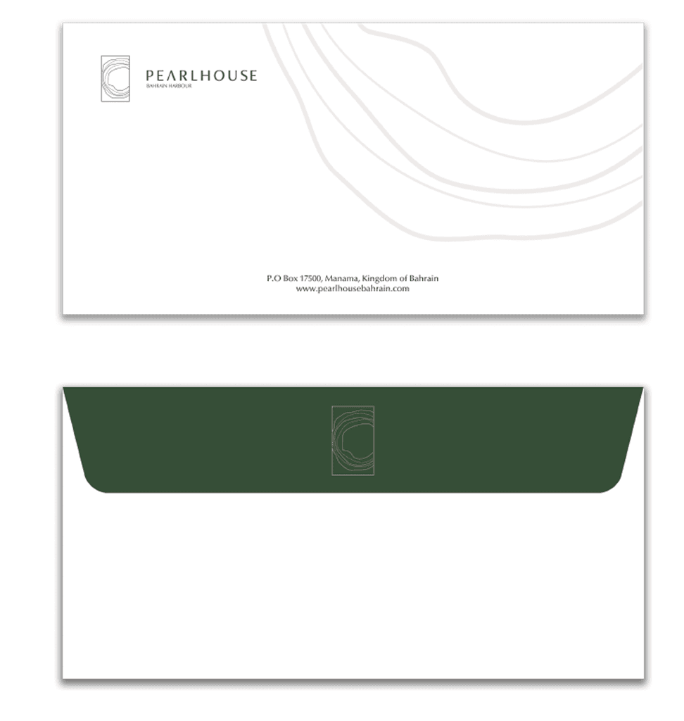 Formal envelope design with subtle branding details, ensuring a polished look for hotel correspondence and internal communication.